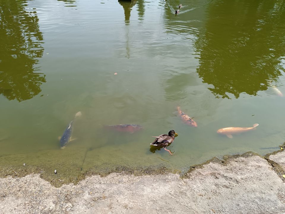 Ludwigsburg, 10 luglio 2023 - Grande vasca con anatre e pesci rossi ben pasciuti