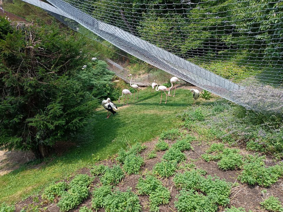 Ludwigsburg, 10 luglio 2023 - Voliera visitabile con ibis, fenicotteri e cicogne