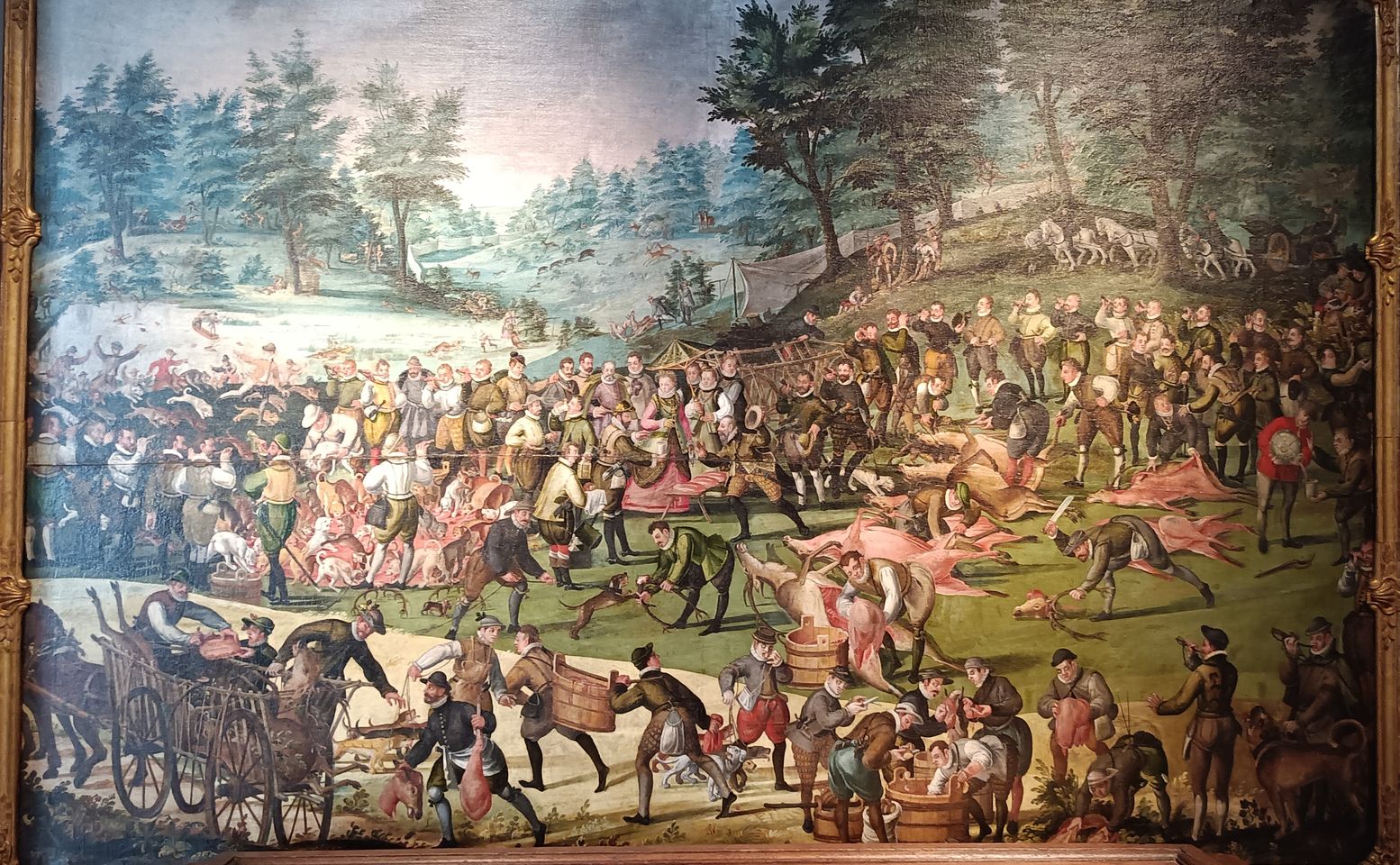 Caccia, massacro e macellazione dei poveri cervi.... Dipinto di Hans Steiner del 1580